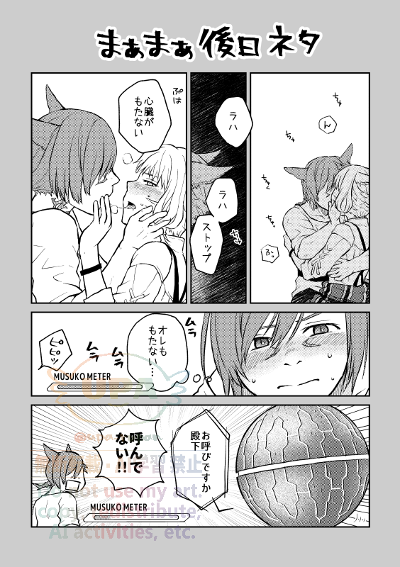 まぁまぁ後日ネタ URA 2023.04.12 2021/02/14 公開時のtweetはこちら うぱ 『パッチ5.4~5.5の公光♀』のオマケ パッチ5.4~5.5の公光♀2021/02/14うぱ公から新人くんへの変化でちょっと関係が不思議な状態になってた新人光♀の話